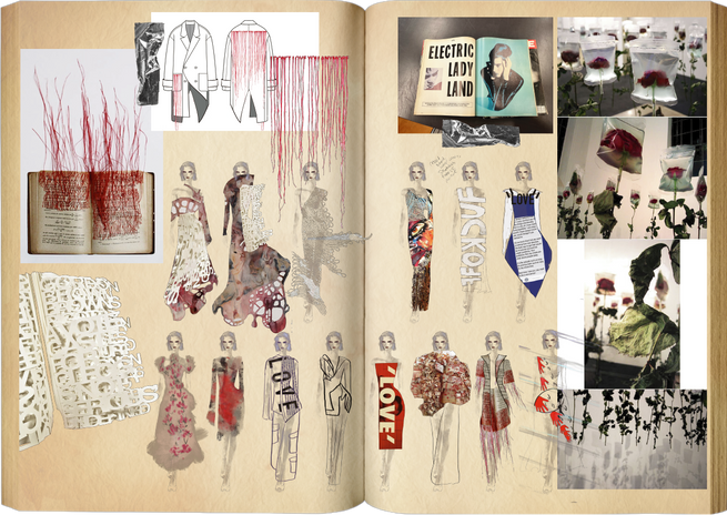 My collection thrives on a chaotic, fragmented, and visceral aesthetic, employing frenetic textile art, intricate prints, and precise laser cutting techniques. It features a symphony of printed and meticulously cut writings, weaving together my own words, those of the previously mentioned visionaries, and narratives collected from individuals who have bravely shared their experiences with abuse.
